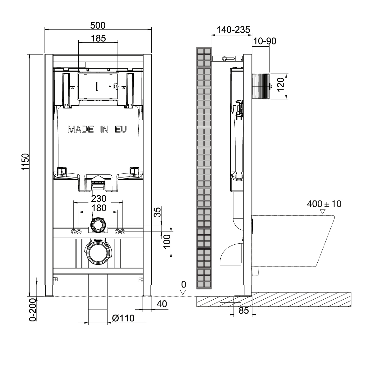 Назначение: для подвесных унитазов
