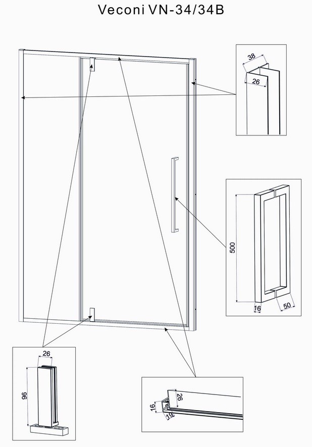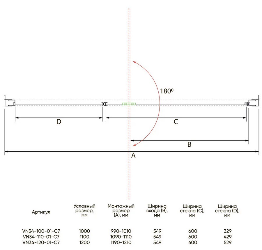 Душевая дверь Veconi 120 VN-34(VN34-120-01-C7) 6мм