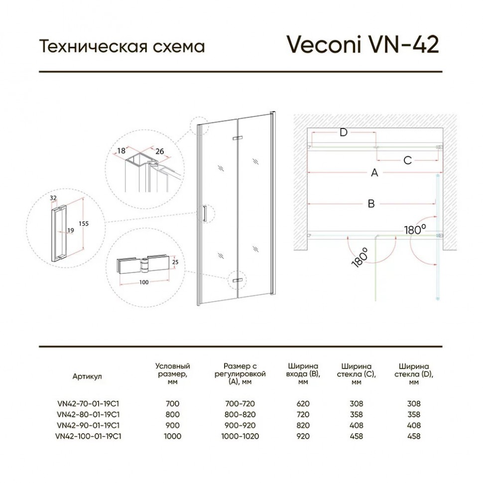 Душевая дверь Veconi 80 VN-42 (VN42-80-01-19C1) 5мм
