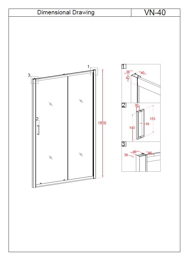 Душевая дверь Veconi 120 VN-40B (VN40B-120-01-C1) 5мм