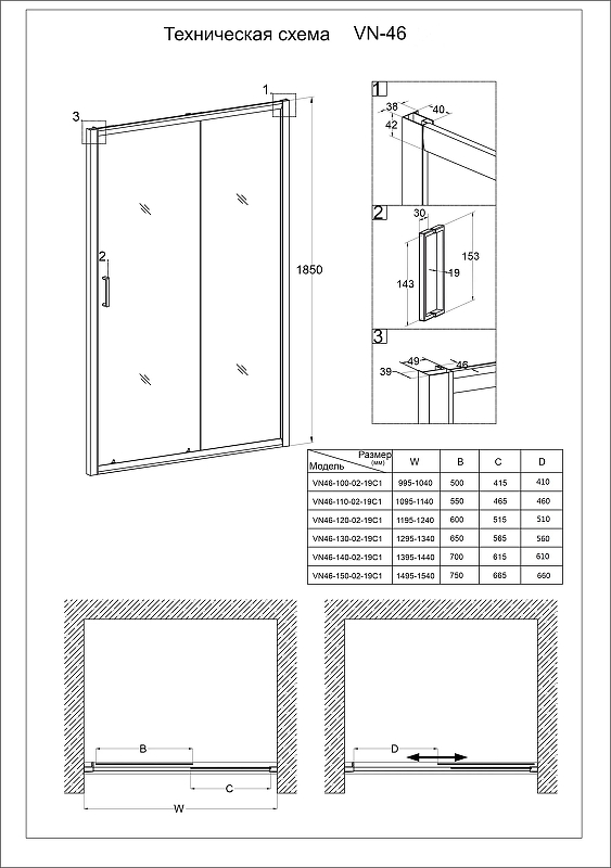 Душевая дверь Veconi 120 VN-46 (VN46-120-02-19C1) Rear 6мм