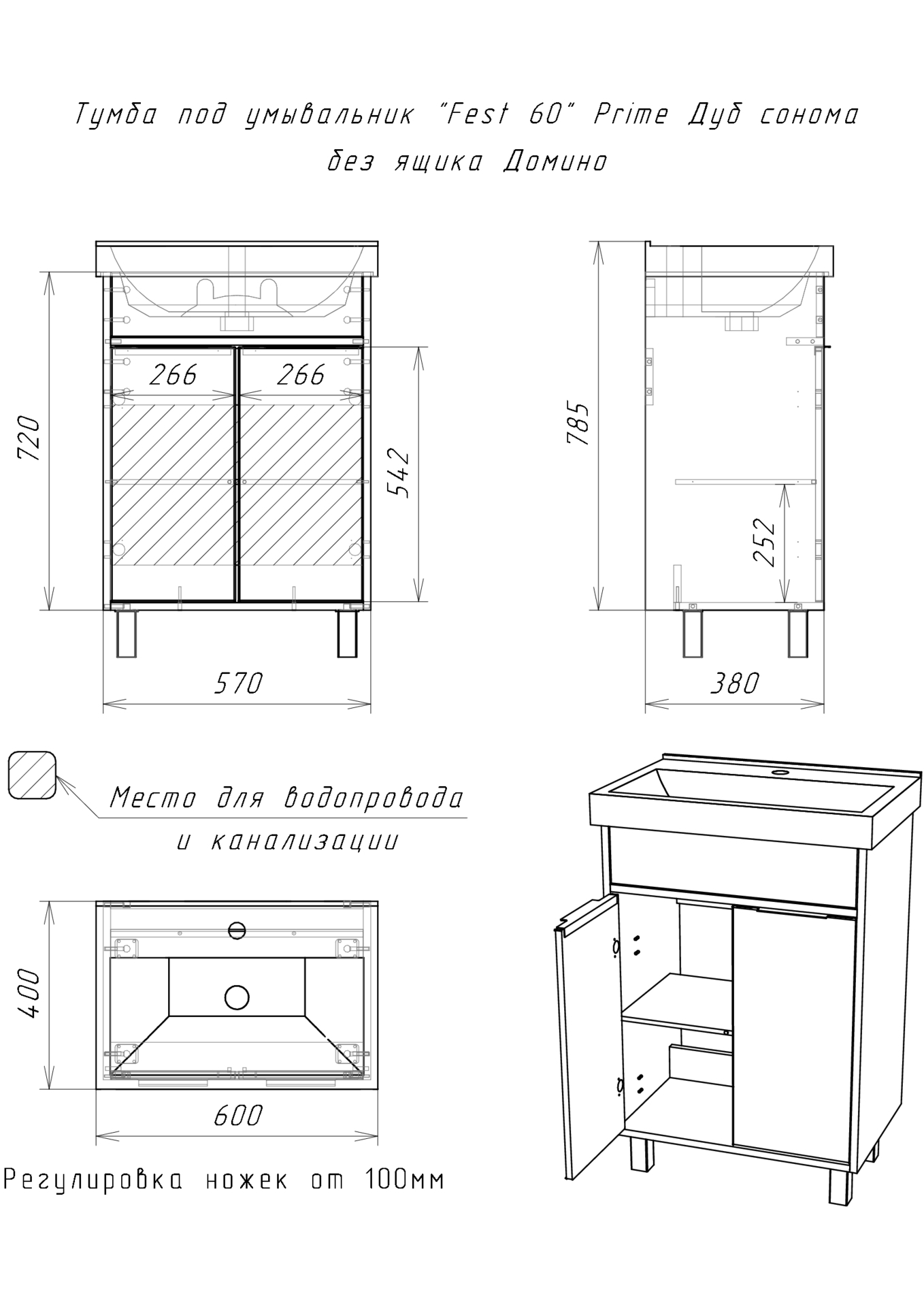 Тумба Prime 60 дуб сонома п/умыв. Fest