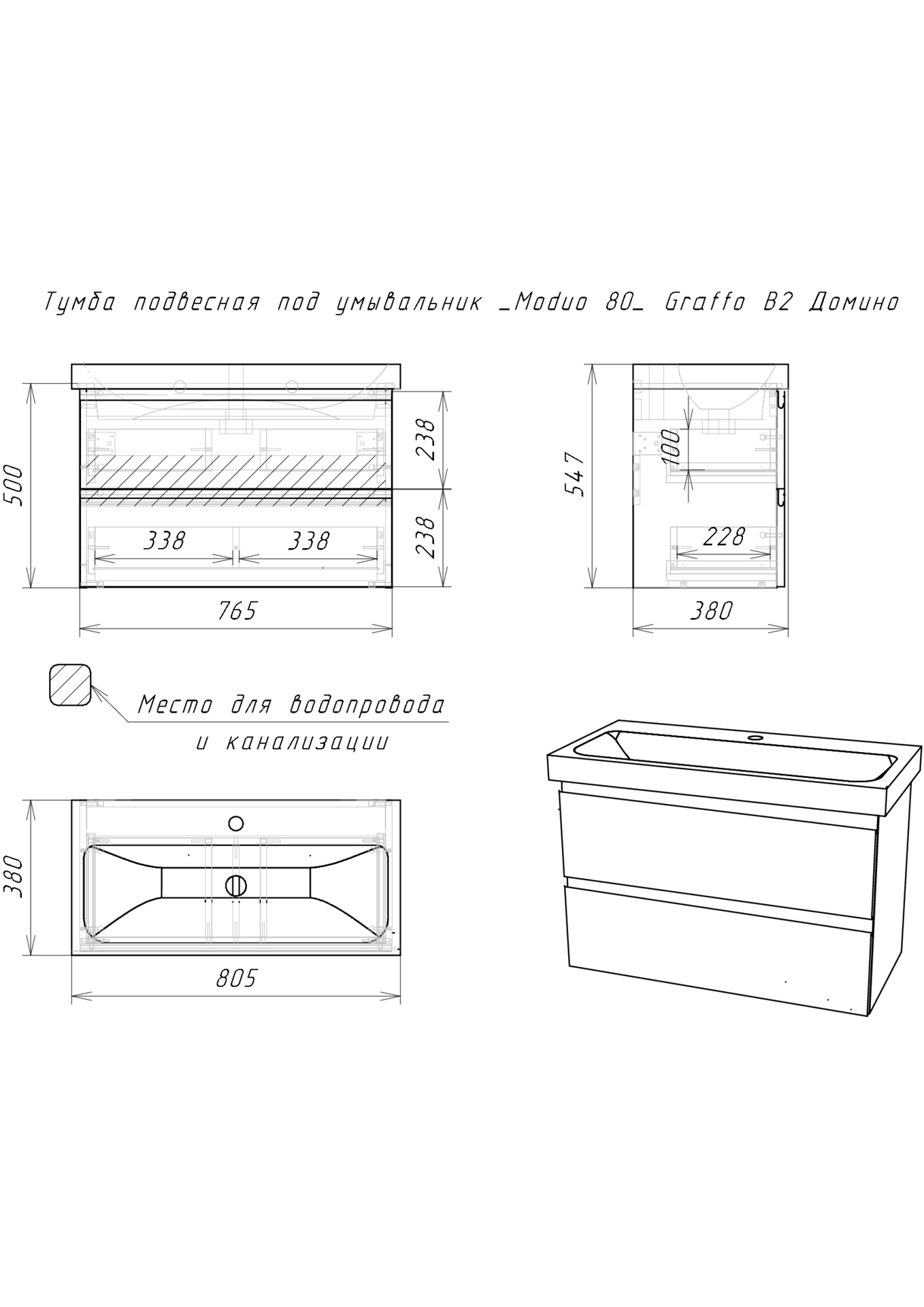 Тумба Graffo 80 подв.2ящ.бел.п/умыв.Moduo 80