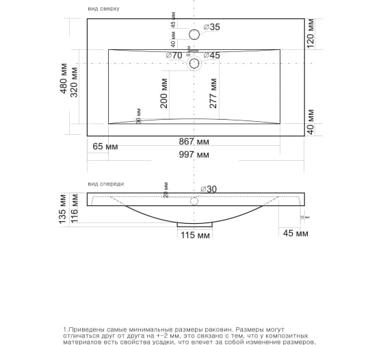 Ширина раковины: 100 см