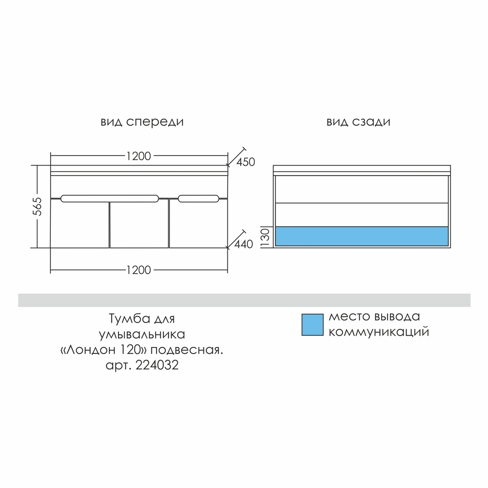 Тумба Лондон 120см подв. 1ящ.2дв (умыв.Сириус120)