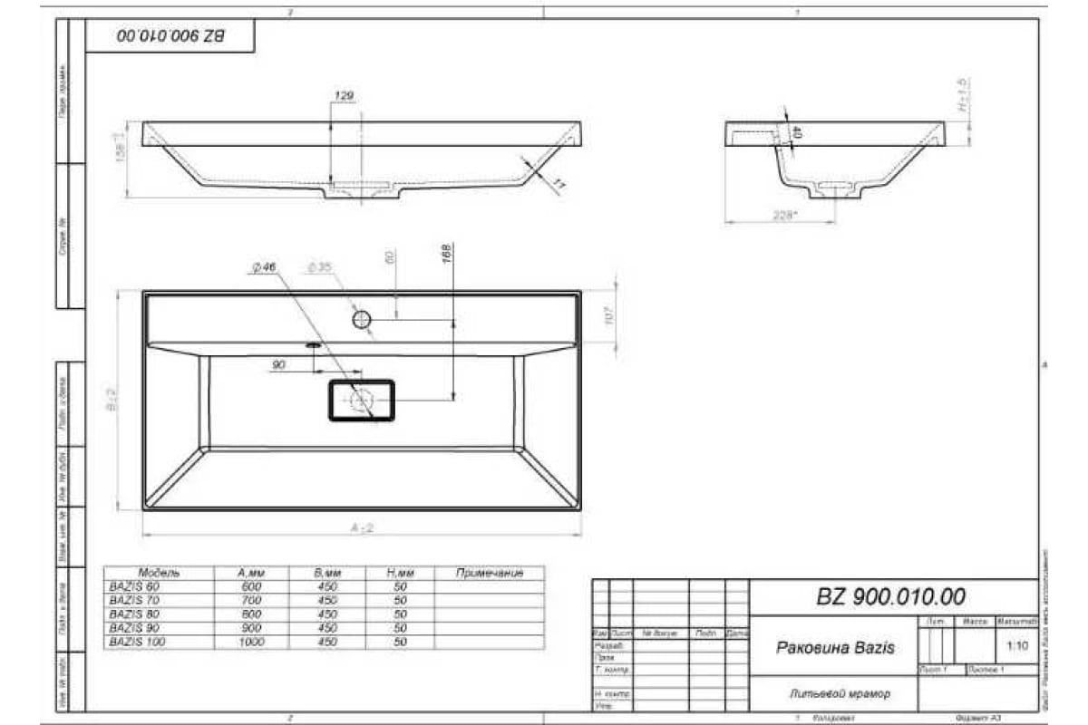 Глубина раковины: 450 мм
