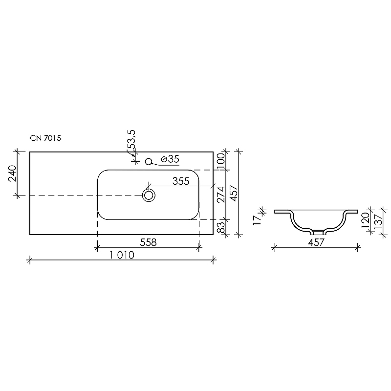 Раковина Element 100см (1010*457*137) арт.CN7015 правый