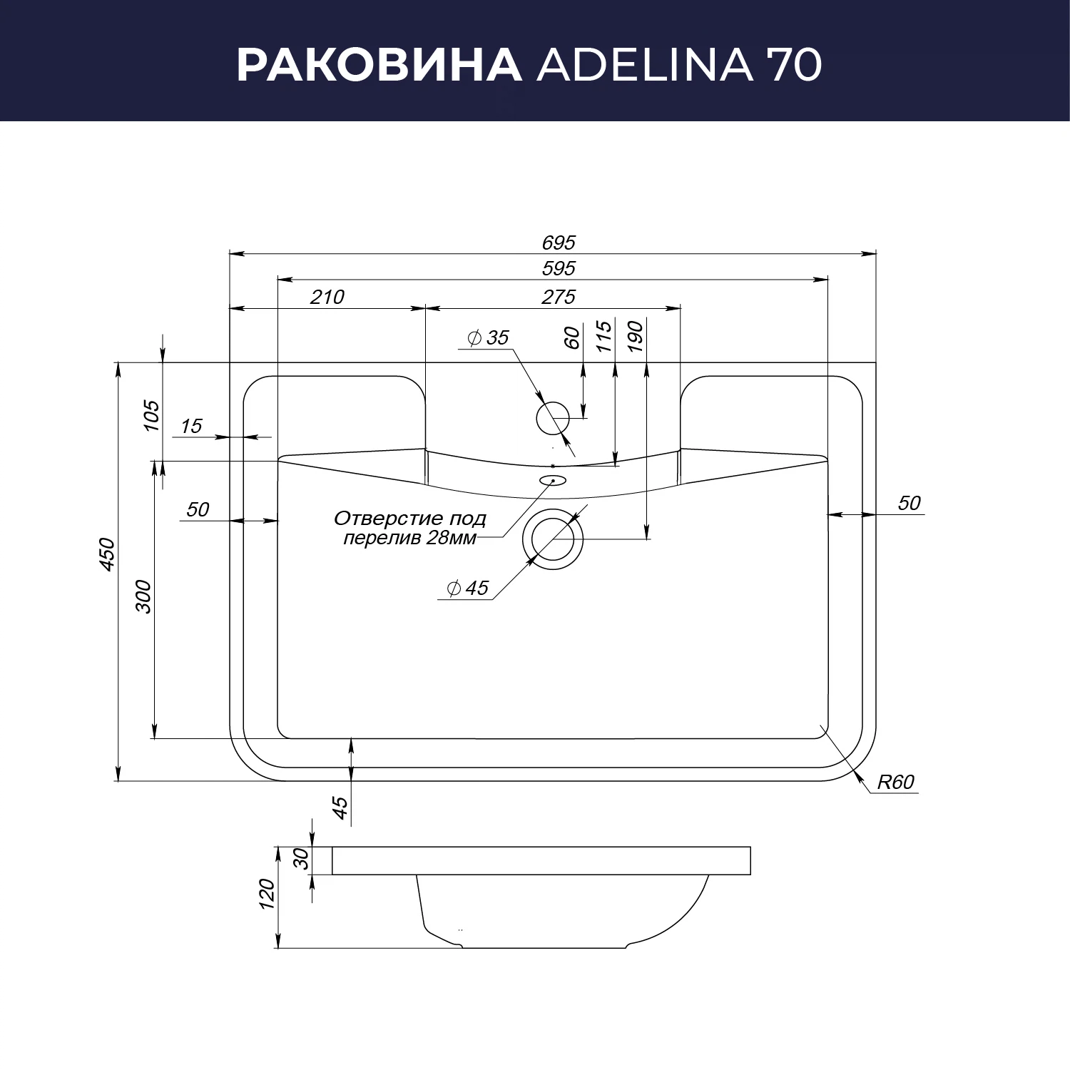 Раковина Adelina 70