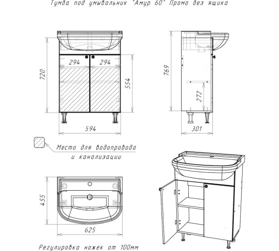 Тумба Промо 60 2дв.п/умыв.Томь 60*