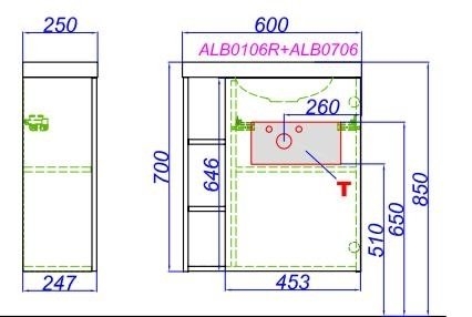Тумба Alba 60 T6/R/LS подв.п/ум.правый св.камень(корпус)