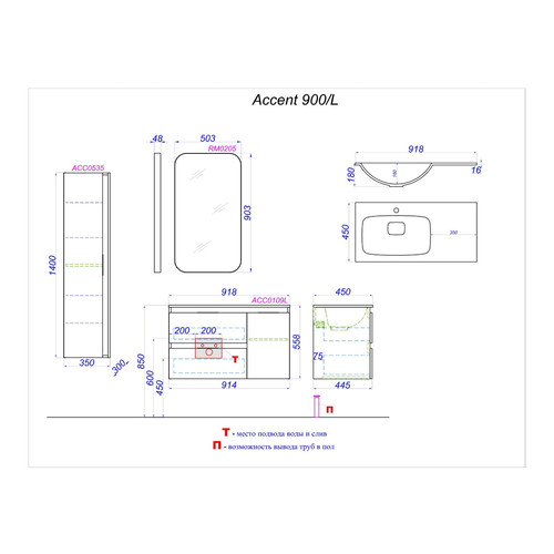 Тумба Accent 90 T9/W подв.прав.(рак.Malaga 90R)
