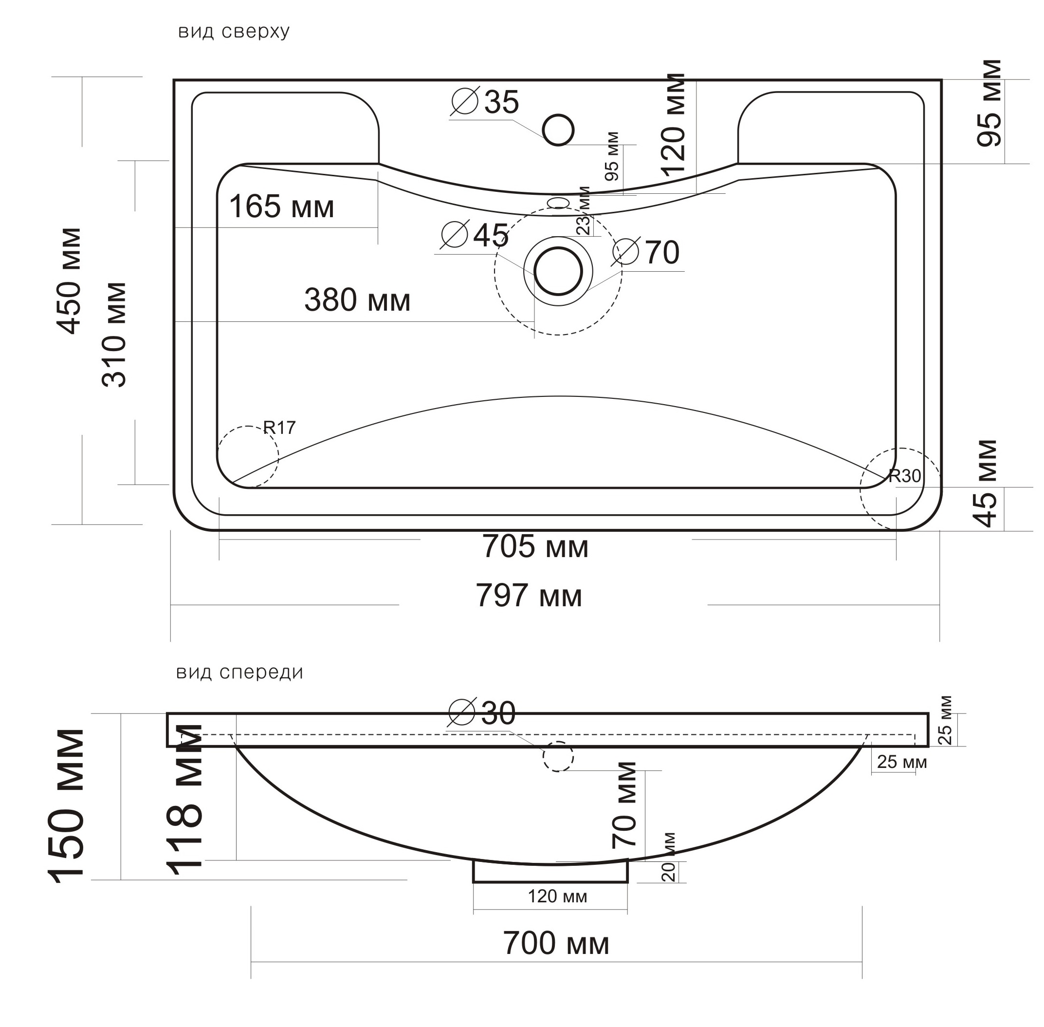 Вид раковины: Встраиваемый сверху