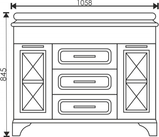 Комплектация: 3 ящика, 2 дверцы, 2 полки, 5 ручек, 4 ножки
