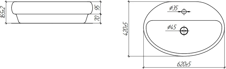 Диаметр слива: 5 см