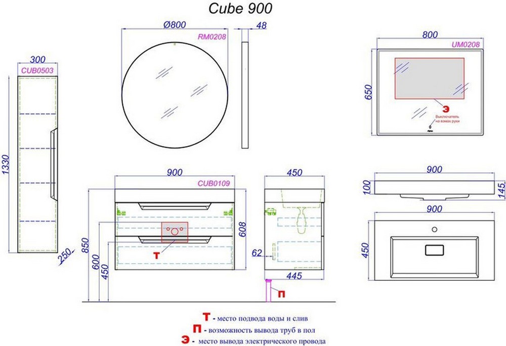 Тумба Cube 90 T9/WM подв.белая+рак.Toledo 900