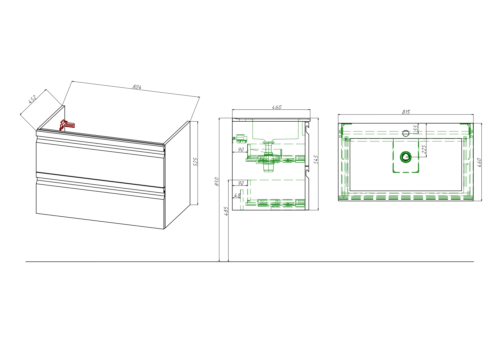 Тумба Вега 80 подв.сер.туман AQ77080-LG+рак.AQ0480-00