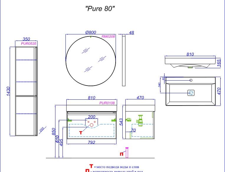 Тумба Pure 80 T8/WM подв.бел.матовый (рак.Вилис 810)
