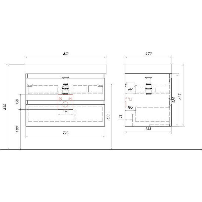 Тумба Геометрия 80 T8/2/MD 2ящ.морская дюна+рак Вилис 810