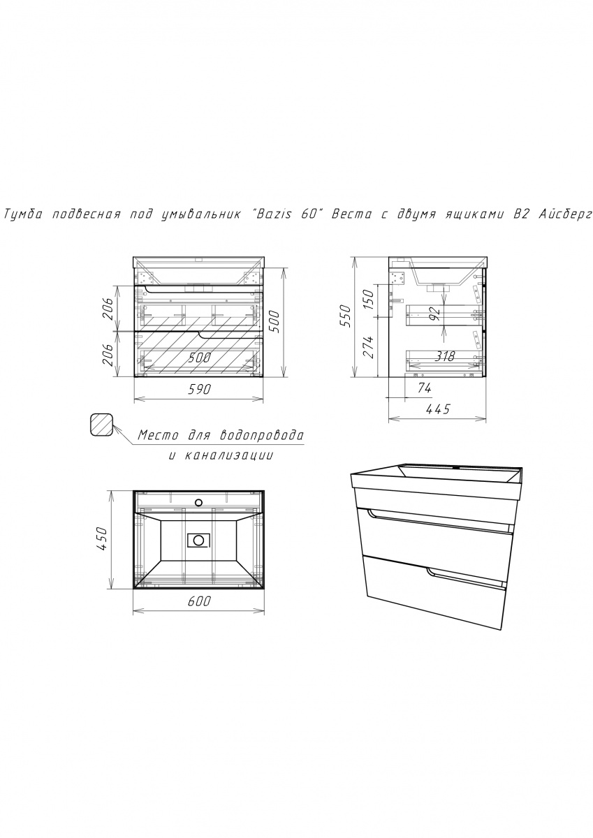 Тумба Веста 60 подв.бел.2ящ.