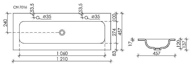 Раковина Element 120см (1210*457*137) арт.CN7016