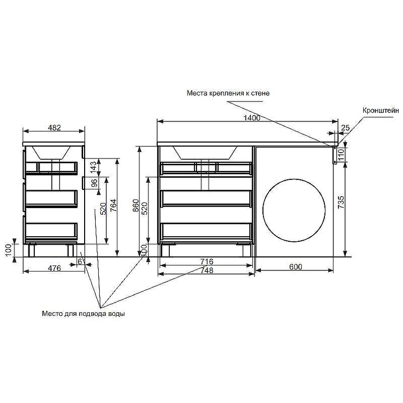 Материал раковины: С раковиной из искусственного камня (литьевого мрамора)